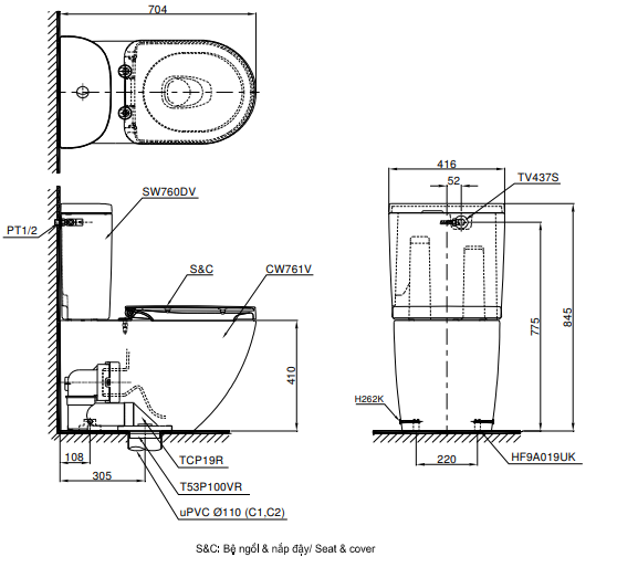 Bàn cầu hai khối, nắp đóng êm – CS761DT5