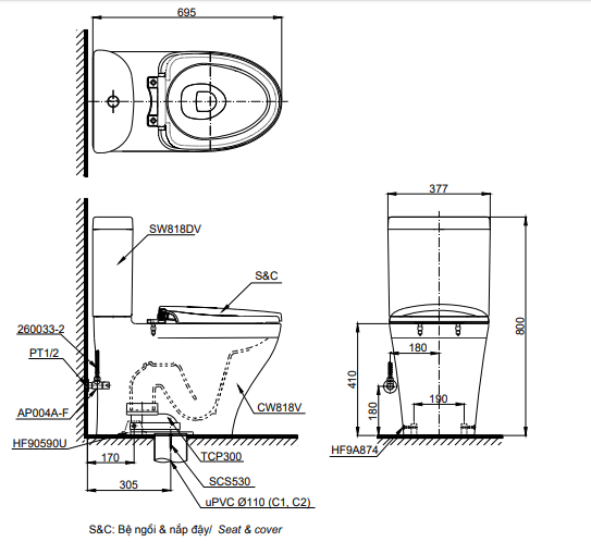 Hãy là người đầu tiên nhận xét “Bàn cầu hai khối, nắp đóng êm – CS818DT3”