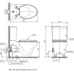 Bàn cầu hai khối, nắp đóng êm – CS945PDT2